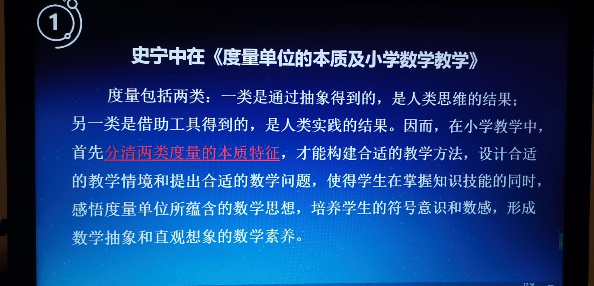 在 2016 年 1 月的《新课程研究》上,王智明教授在《小学数学中度量性概念的教学思考》这篇文中指岀: