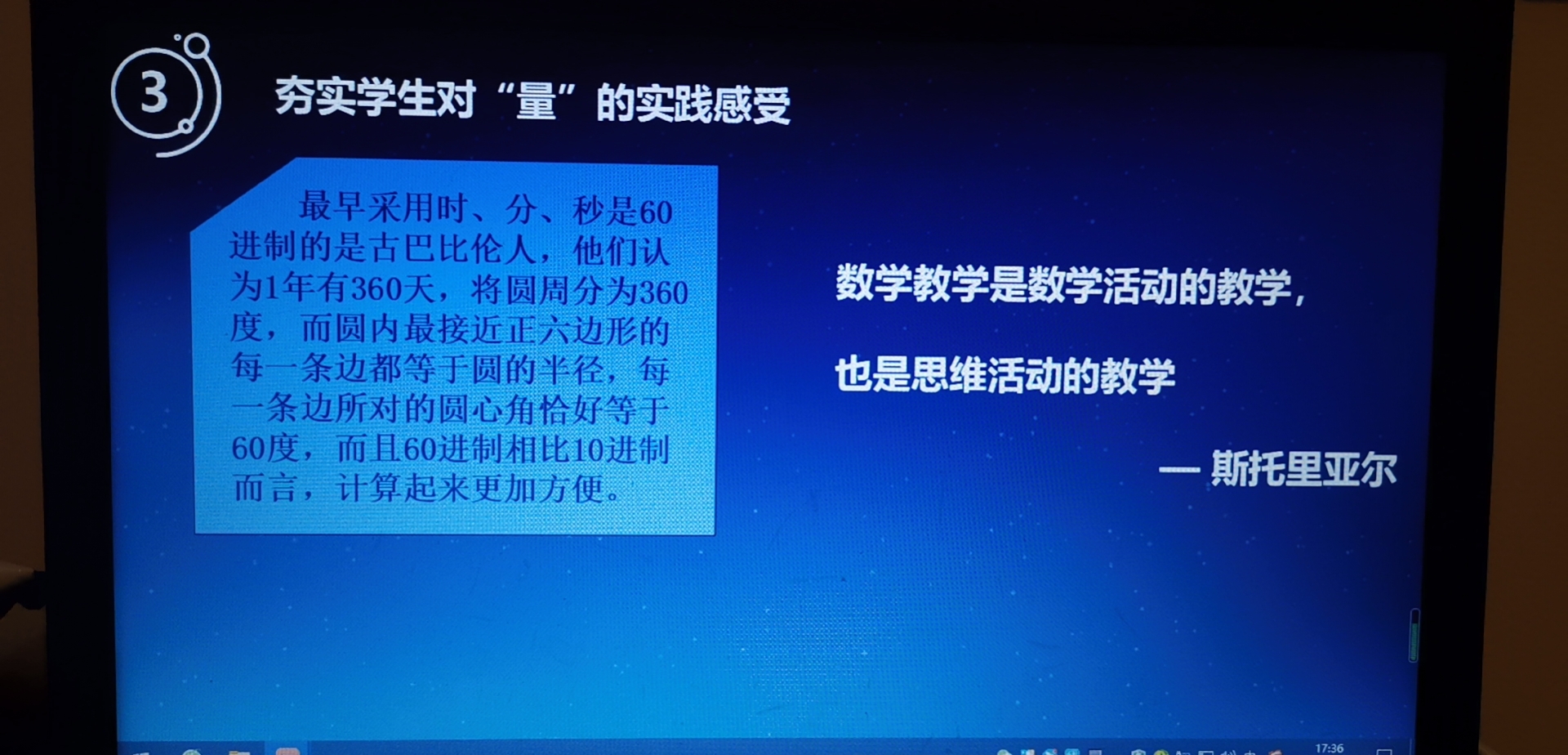 我们对 “度量” 从陌生到熟悉,我们对教学从茫然到顿悟,我们在网络研讨的过程中一路走来一路收获。感谢大赛,让我们对数学的本质、对数学教学的价值有了全新的认知,我们也一定会在今后的教学中让自己的教学越来越有深度有思想,努力让学生会用数学的眼睛观察、会用数学的思维思考、会用数学的语言表达。