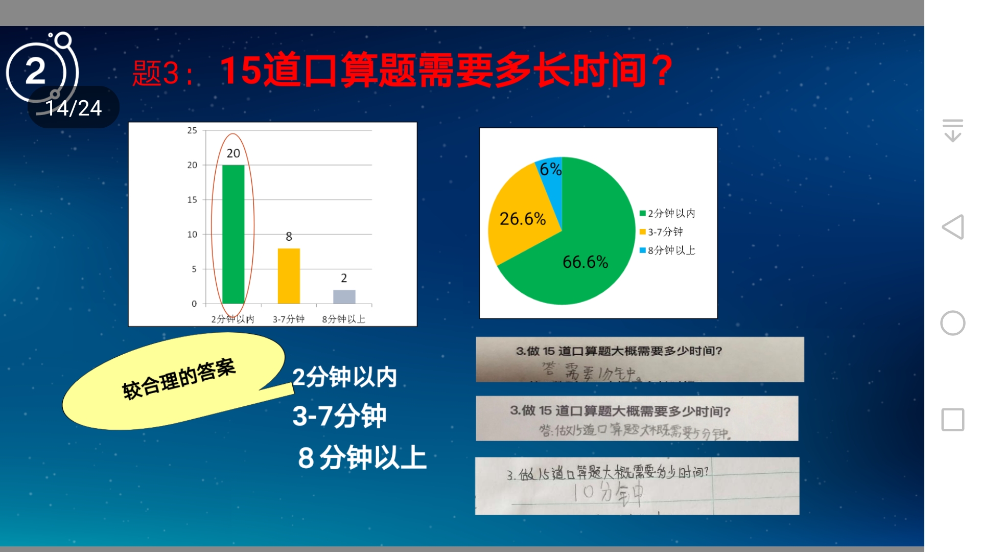 3. 做 15 道口算题大概用多长时间?(正确答案:2 分钟左右)