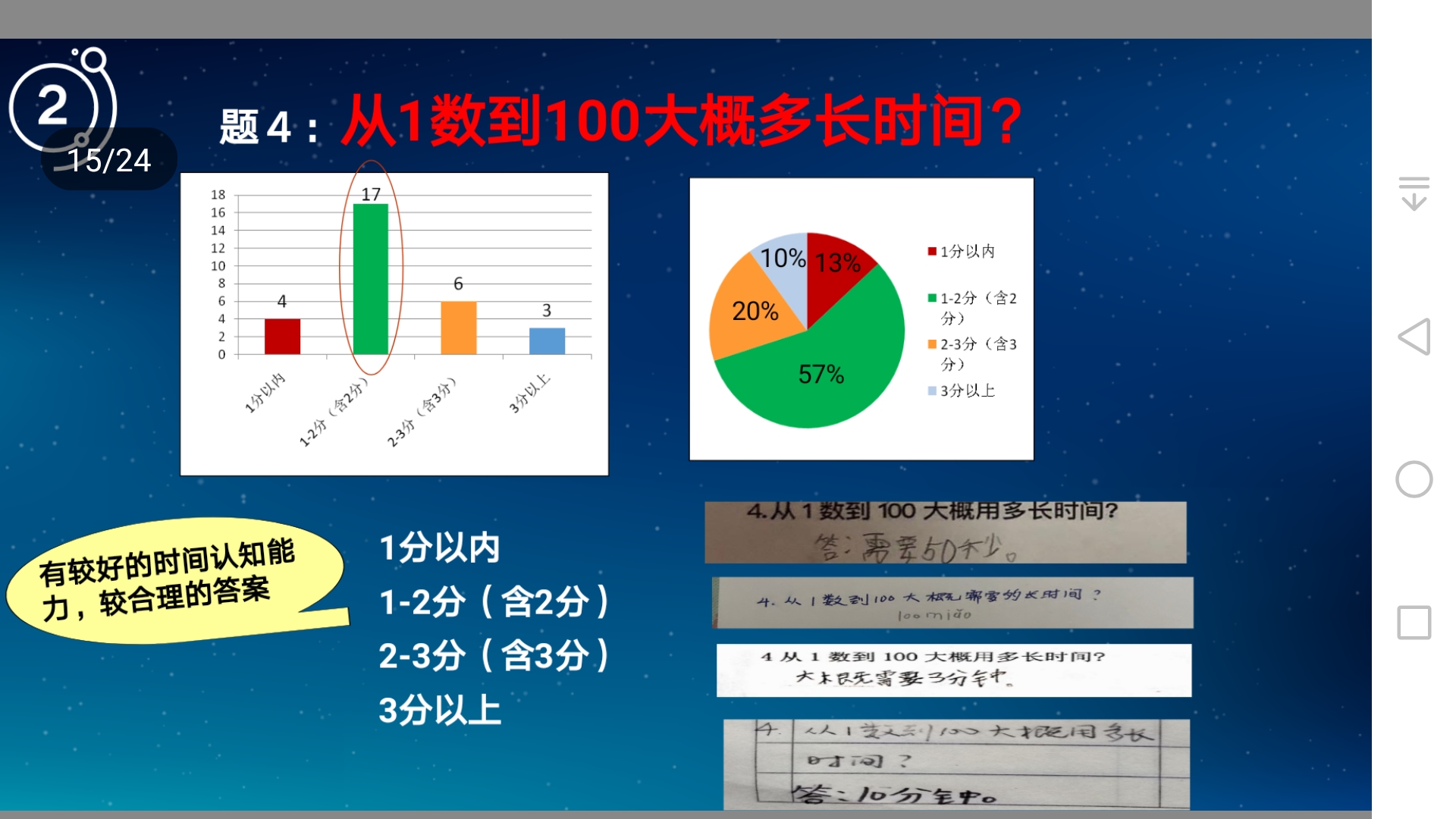 4. 从 1 数到 100 大概用多长时间?(正确答案:?分钟,快慢不一,判断不准)