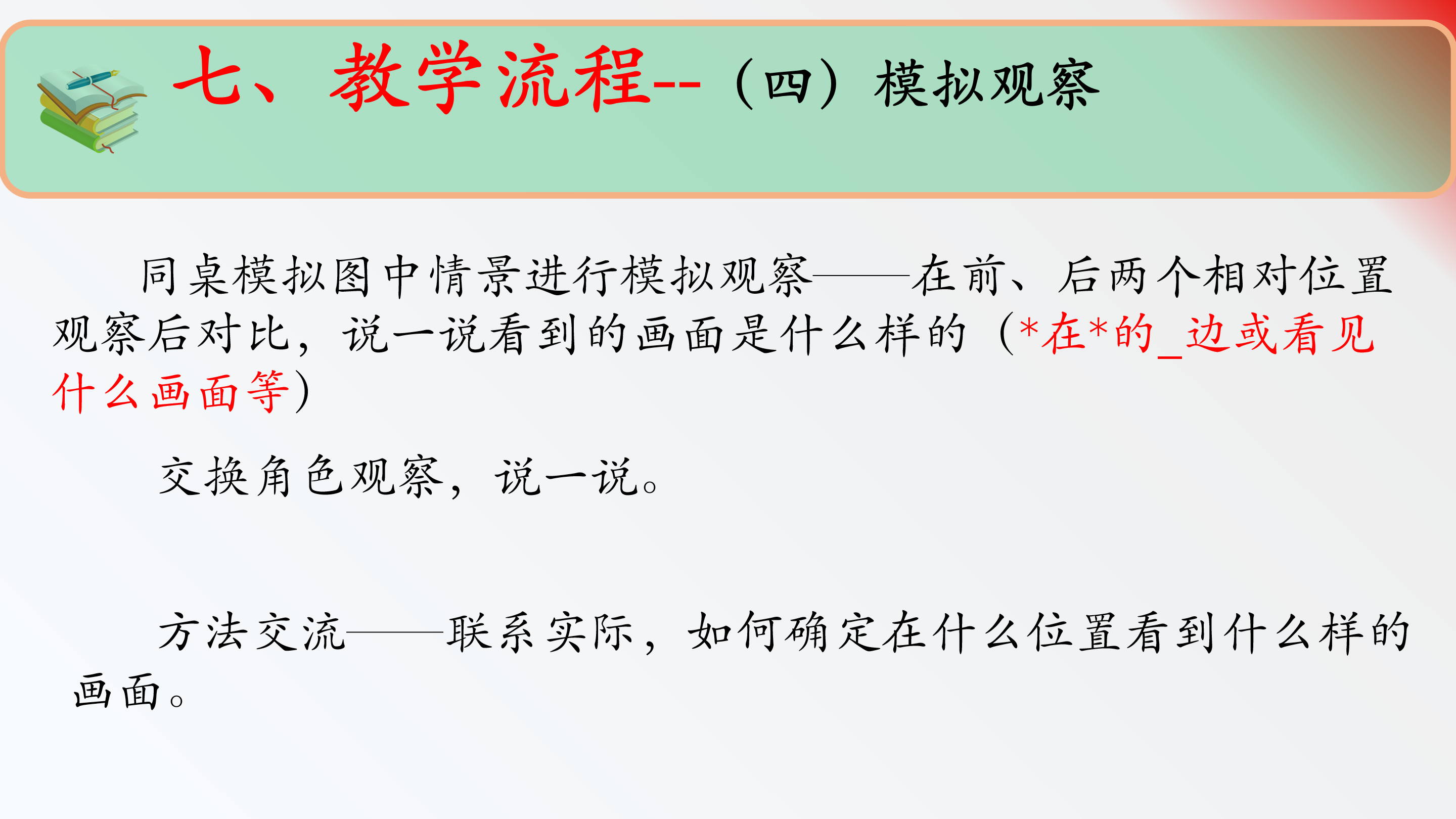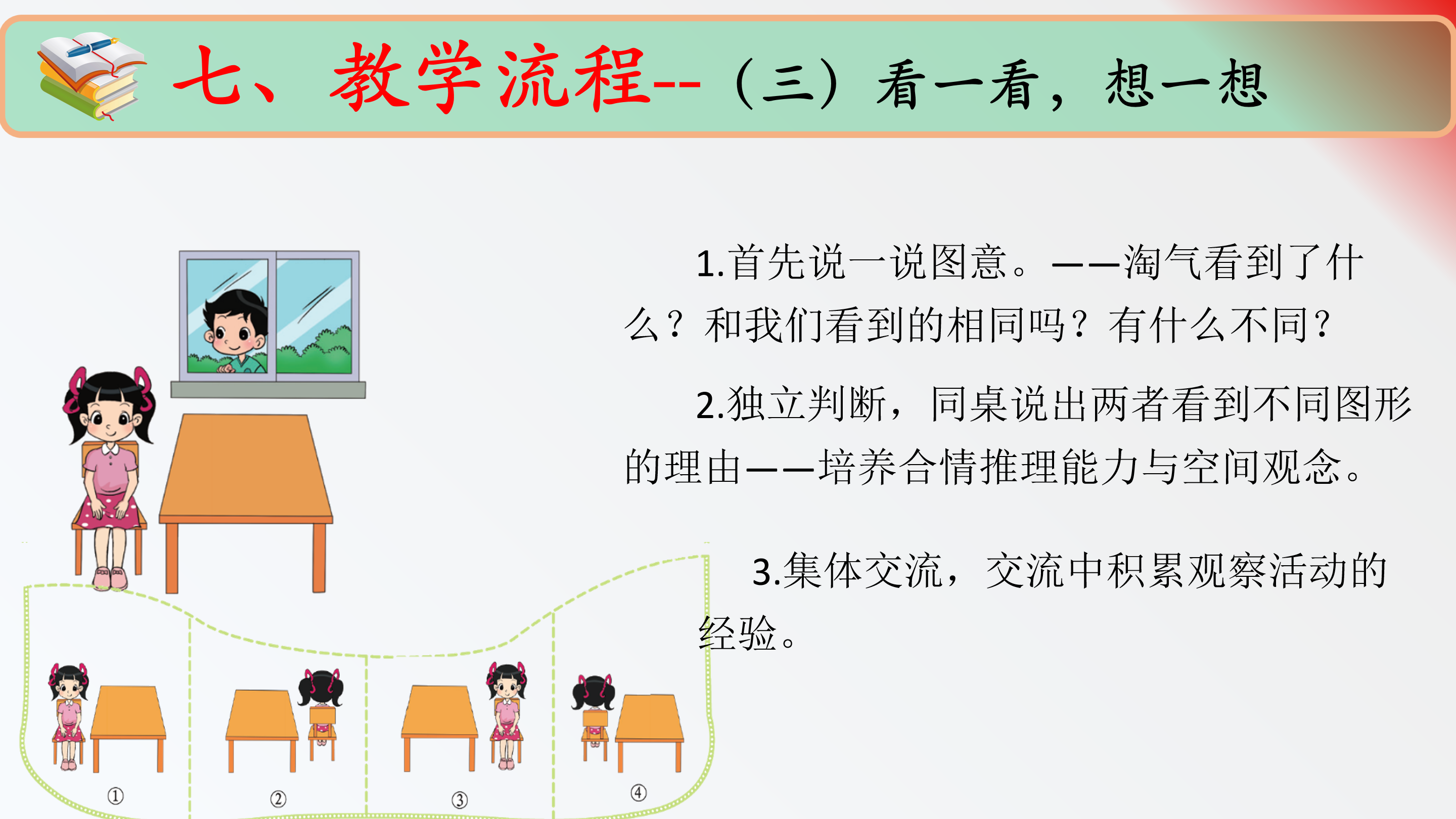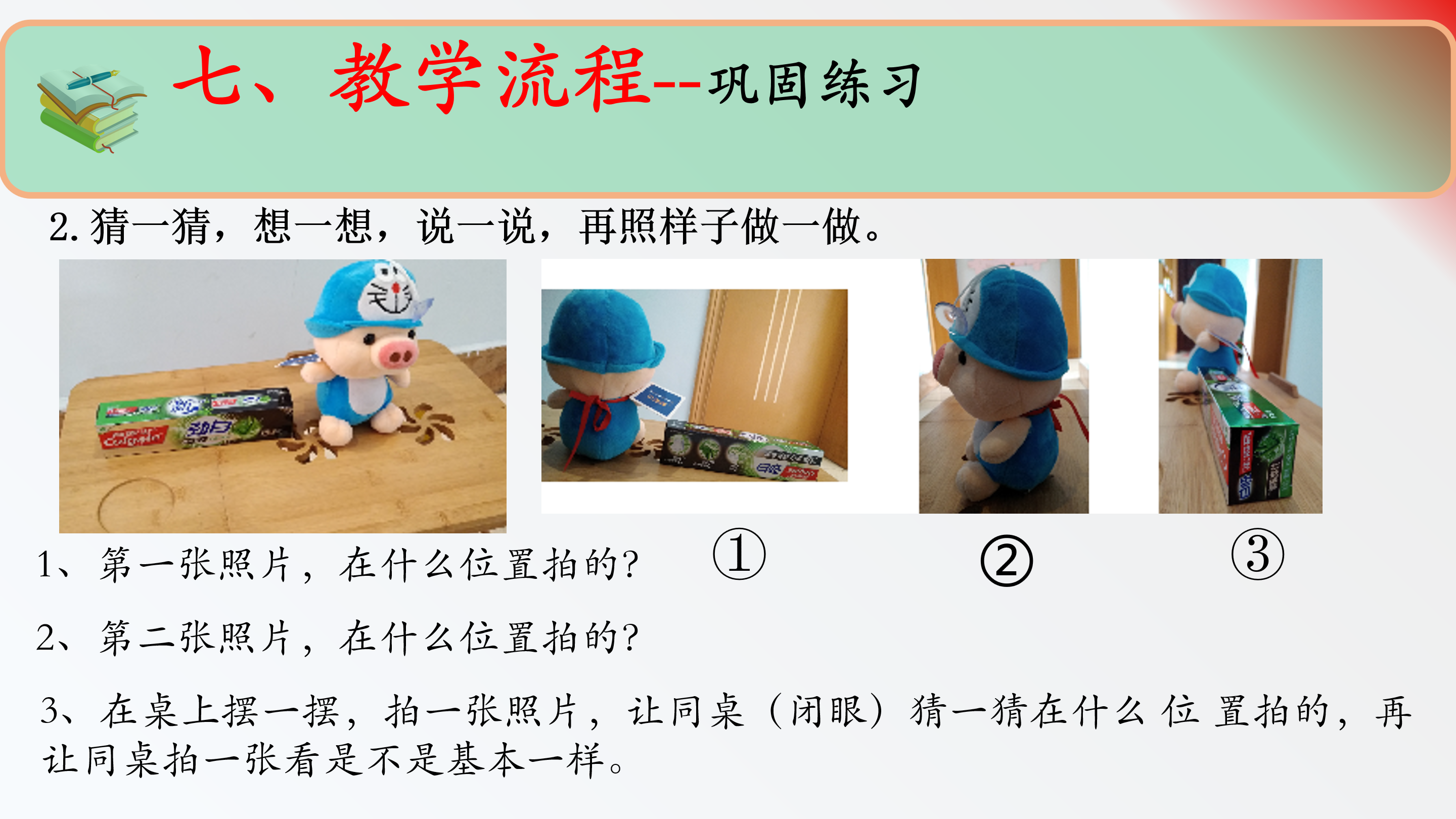 引导学生初步感知:从相对位置观察同一物体,看到的画面正好是相反的。