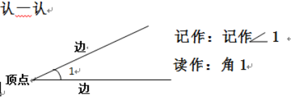2. 通过自学、合作、交流等活动,知道角的各部分名称、写法及读法。