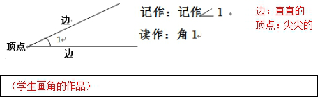 师:大家都画好了。哪组同座位愿意到讲台前展示一下你画的角,说一说你是怎么画下来的?