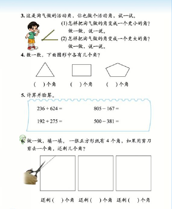 新世纪小学数学二年级下册第六单元第一课时《认识角》教材图片